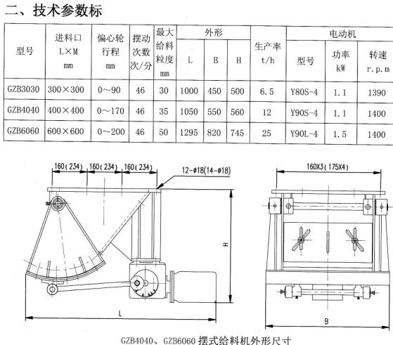 GZB型擺式給料機(jī)(槽式給料機(jī)或者往復(fù)式給料機(jī))由殼體、弧板、鄂板、驅(qū)動(dòng)裝置、閘板等組成,當(dāng)電機(jī)開(kāi)動(dòng)后經(jīng)減速機(jī)、曲柄連桿機(jī)構(gòu)拖運(yùn)弧板作圓弧往復(fù)運(yùn)動(dòng), 煤均勻地卸到其它設(shè)備上。