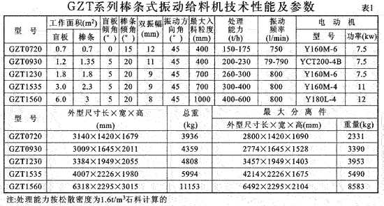 GZT棒條式振動(dòng)給料機(jī)(棒條振動(dòng)給料機(jī))共有五個(gè)規(guī)格,適用于破碎機(jī)前大塊物料的均勻給料。特別適合于黑色或有色金屬礦石、建筑石料粗碎前的給料用。由于在接近排料端的給料面布有分級(jí)作用縫隙可調(diào)的棒條,所以在進(jìn)行給料同時(shí)能將物料中泥土及細(xì)碎粒級(jí)的物料分離出去,使其后面的破碎機(jī)更有效發(fā)揮功能。
