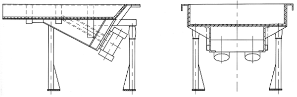 該系列給料機(jī)的給料過程是利用特制的振動(dòng)電機(jī)或兩臺電動(dòng)機(jī)帶動(dòng)激振器驅(qū)動(dòng)給料槽沿傾斜方向作周期直線往復(fù)振動(dòng)來實(shí)現(xiàn),當(dāng)給料槽振動(dòng)的加速度垂直分量大于重力加速度時(shí),槽中的料被拋起,并按照拋物線的軌跡向前跳躍運(yùn)動(dòng),拋起和下落在瞬間完成,由于激振源的連續(xù)激振,給料槽連續(xù)振動(dòng),槽中的煤連續(xù)向前跳躍,以達(dá)到給料的目的。